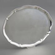 1e gehalte zilveren dienblad met gecontourneerde rand, Duitsland, 20e eeuw, gewicht 597 gram, 38 × 29,5 cm