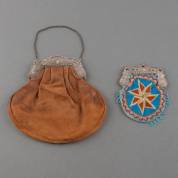 Suède tas met 2e gehalte zilveren beugel en kralenbeursje met 2e gehalte zilveren beugel -gebruikssporen-
