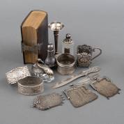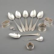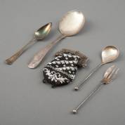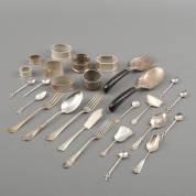 Divers klein zilver, voornamelijk 2e gehalte, waaronder: couvert, servetringen, Oosters slacouvert met ebben grepen, gewicht zonder slacouvert 499 gram