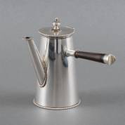 2e gehalte zilveren chocoladekan gedecoreerd met parelranden, houten greep, meester: J.M. van Kempen & Zonen, Voorschoten, 1889, brutogewicht 275 gram, 14 × 15 × 9,5 cm -deukje-