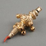 Verguld 1e gehalte zilveren rammelaar, met fuit, bellen en takje bloedkoraal. Birmingham, 1900, brutogewicht 57 gram, 13 cm