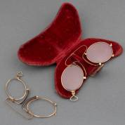 Klein brilletje met 14kt gouden montuur, tweede helft 19e eeuw, brutogewicht 11,7 gram, 2,5 × 11 cm