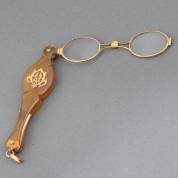 Lorgnetbril met 18kt gouden montuur aan hoornen heft, ingelegd met gouden monogram 'AO', Frankrijk, 19e eeuw, 11 cm