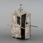 1e gehalte zilveren 18e-eeuwse draagstoel met gedreven decors, meester: HP, eind 19e eeuw, gewicht 293 gram, 16 × 13 × 6 cm -deur sluit niet-