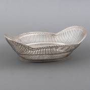 Ovale 2e gehalte zilveren broodmand met filetrand, meester: A. Presburg, Haarlem, 1934, gewicht 450 gram, 9 × 29 × 21 cm