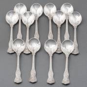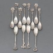 Twaalf 1e gehalte zilveren dessertlepels, model Olympian, gemerkt: Albert William Feavearyear, Londen, 1896, uitvoering Tiffany & Co., lengte 14,5 cm, gewicht 517 gram