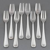 Acht 2e gehalte zilveren taartvorkjes, rondfilet, meester: Van Kempen & Begeer, Zeist, circa 1970, gewicht 195 gram, 14 cm