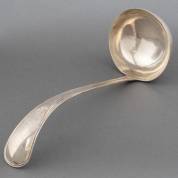 2e gehalte zilveren soepdienlepel, rondfilet, meester J. M. van Kempen & Zonen, Voorschoten, 1908, gewicht 160 gram, 30 cm