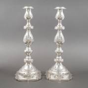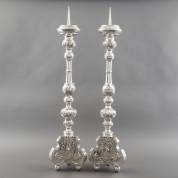 Paar kapitale 1e gehalte zilveren kerkkandelaars, barok model, meester: J.A.M. Claessens, Swalmen, 1989, (bruto)gewicht 6626 gram, 110 cm