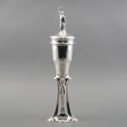 3e gehalte zilveren art nouveau bokaal, de deksel gesierd met de godin Victoria, Alberg, Zweden, 1902, gewicht 1238 gram, 52 × Ø 12,5 cm