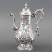 1e gehalte zilveren koffiepot, gedreven en geciseleerd met voluten en rocailles, meester: Marshall & Sons, Edinburgh, 1839, gewicht 826 gram, 30 × 23 × Ø 12 cm