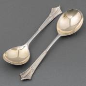 Paar 1e gehalte zilveren dienlepels met vermeil bak, meester: Robert Stebbings, Londen, 1895, gewicht 159 gram, 21,5 cm