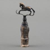 1e gehalte zilveren kurkentrekker naar 18e-eeuws model, bekroond met paard, meester: Koninklijke Begeer, Zoetermeer, eind 20e eeuw, brutogewicht 89 gram, 10 cm