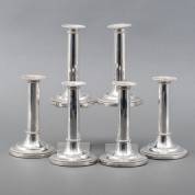 Zes 1e gehalte zilveren kandelaars op ronde voet met parelranden, gladde stam, en afneembare bobèches met parelrand, meester: Jan Buysen, Amsterdam, 1800, brutogewicht 2250 gram, 16,5 cm hoog