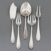 Vijfdelig 2e gehalte zilveren hors d'oeuvreset, puntfilet, gewicht 107 gram, botermes 16 cm