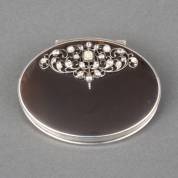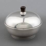 1e gehalte zilveren dekseldoos met bakelieten knop en binnenwerk, Birmingham, 1936, brutogewicht 188 gram, 10 × Ø 11,5 cm