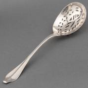 1e gehalte zilveren natfruitschep met ajourgezaagde bak, de steel met hondenneus, meester: Johannes Verloove, Rotterdam, 1784, gewicht 60 gram, circa 21 cm