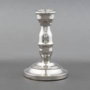 2e gehalte zilveren kandelaar op ronde geprofileerde voet, meester: P. Kabel en H. Hammelburg, Amsterdam, 1947, brutogewicht 357 gram, 15 × 9,5 cm -lichte deukjes-