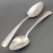 Paar 2e gehalte zilveren groentedienlepels, Haags lof, meester: Gerritsen & Van Kempen, Zeist, 1920, gewicht 184 gram, 27 cm
