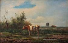 Simon van den Berg (1812-1891), landschap met koe, olieverf op paneel, l.o. gesigneerd, 21 × 34 cm