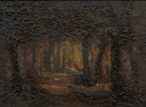 Narcisse Díaz de la Peña (1807-1876), bosgezicht, olieverf op paneel, l.o. gesigneerd -donkere verflaag sterk gecraqueleerd-, 15,7 × 22 cm