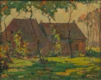 Mogelijk Pauline Palmer (1874-1938), gezicht op een boerderij, olieverf op karton, r.o. gesigneerd, 25,5 × 32 cm