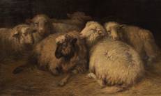 Dirk Peter van Lokhorst (1818-1893), 'Rustig in de stal', olieverf op doek, l.o. gesigneerd en gedateerd 1885, verso getiteld op het spieraam met het opschrift 'D. van Lokhorst te Utrecht Lange Viestraat no 181' -twee minieme chipjes uit de verflaag-, 85 × 143 cm