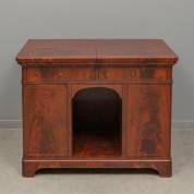 Mahonie buffet/bureau met twee opklapbare bladen, twee lades, twee deurtjes en een centraal compartiment, met ingelegde biezen, Engeland, 19e eeuw -lichte fineerschade-, 83,5 × 108 × 64,5 cm