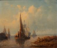 Jan Frederick Schütz (1817-1888), schepen op kalme zee, olieverf op paneel, l.o. gesigneerd en gedateerd '59 -vergeeld-, 20,5 × 24,5 cm