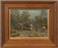 Joseph Gerardus van Jole (1877-1919), bomen rooien in het bos, olieverf op paneel, l.o. gesigneerd en gedateerd '15, 18 × 24,5 cm