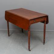 Eiken pembroke tafel met lade en faux lade, staan wieltjes, Engeland, 18e eeuw, 77 × 104 × 56 cm (102 cm uitgeklapt)