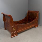 Mahonie bed, zogenaamd lit en bateau, empire, matrasmaat 195 × 90 cm, buitenmaat 99 × 230 × 109 cm