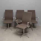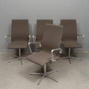 Vier grijs beklede draaibare armstoelen op rvs onderstel, model Oxford, ontwerp Arne Jacobsen, uitvoering Fritz Hansen, modern -gebruikssporen-, 104 × 61 × 53 cm