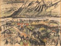 Marten Klompien (1917-1996), landschap, gouache op papier, l.o. gesigneerd en gedateerd '64 -los in lijst-, 44,5 × 53 cm