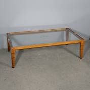 Salontafel met glazen blad en bubinga frame, model Maxwell, uitvoering Schuitema, 44 × 150 × 80 cm