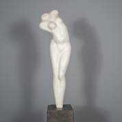 Emile Cornelis (1946), 'Venus', marmer, niet gesigneerd, op Belgisch hardstenen sokkel -klein chipje van beeld onderaan-, torso 83 cm, sokkel 110 × 20 × 20 cm, daarbij: boek waarin het werk is afgebeeld