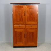 Vierdeurs bubinga kast met twee lades en ebben, wengé en aluminium accenten, serie Decoforma, uitvoering Schuitema, 185 × 118 × 43 cm