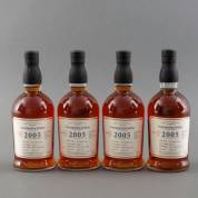 Vier flessen rum: Foursquare 12 jaar oud, 2005-2017 -vulniveau's in orde-