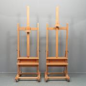 Paar beukenhouten schildersezels, model M06, uitvoering Mabef, Italië -één schroef ontbreekt aan achterzijde-, onderstel 66 × 65 cm