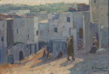 Frans Hogerwaard (1882-1921), figuren op straat in Tanger, olieverf op doek, r.o. gesigneerd en gedateerd 1912 -wat verfverlies-, 24 × 35 cm