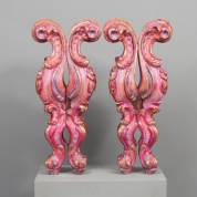 Claire Begheyn (1950), paar gekleurde barokke elementen, beschilderd hout, gesigneerd en gedateerd 2005, maat per stuk 64 × 23 × 20 cm