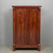 Mahoniegefineerde meidenkast met spitsbogen op de deuren, biedermeier -stuk achterpoot afgebroken, maar wel aanwezig, gebruikssporen-, 161,5 × 104 × 51 cm