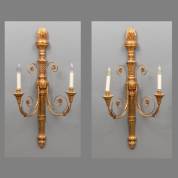 Paar verguld houten tweelichts wandlampen, modern, 84 × 42 × 20 cm