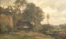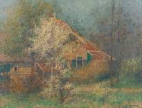 Herman Heijenbrock (1871-1948), bloesembomen voor boerderij, olieverf op doek, r.o. gesigneerd -gedoubleerd-, 64 × 82,5 cm