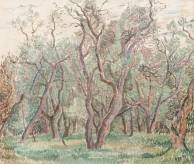 Jacob Nieweg (1877-1955), bomen, marouflé op board, r.o. gemonogrammeerd en gedateerd '29, 43 × 50 cm