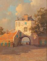 Jan Knikker Junior (1911-1990), de Vischpoort te Harderwijk, olieverf op doek, r.o. gesigneerd, 49 × 38 cm