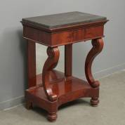 Mahonie trumeau met marmeren blad en spiegelachterwand, laat empire -gebruikssporen, ornamentje ontbreekt aan de onderzijde van het blad-, 84 × 64,5 × 42 cm
