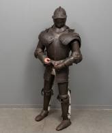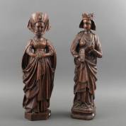 Twee eiken beelden: kopie naar een bewener van het mausoleum van Isabella van Bourbon, 19e eeuw -barst achterzijde nek-; en Sint Catharina, 19e eeuw -houtwormschade-, beide 60 cm
