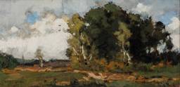 Theophile de Bock (1851-1904), heidelandschap, marouflé, r.o. gesigneerd, 20 × 40 cm, herkomst: Galerie Dick van Straten, Den Haag, 2018