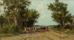 Herman Bogman (1890-1975), landschap met herders, ezel en koeien, olieverf op paneel, r.o. gesigneerd, 22 × 39,5 cm